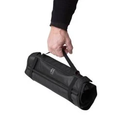Når bordet ikke er i brug, pakkes Asivik Folding Table smart sammen til et kompakt rør, der er 40 cm. i længden og 10 cm. i diameter. Det kan nemt sidde på siden af rygsækken eller være bag i bilen. Bemærk, at bordet rulles sammen i bordpladen, og de to fastmonterede stropper holder det hele effektivt sammen.
