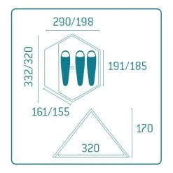 Med indertelt er der plads til 3 voksne eller 2 voksne og to mindre børn. Bruger du kun yderteltet, er der plads til 4 voksne. Med en højde på 170 cm, behøver du ikke orme dig i tøjet, mens du ligger mellem kammeraterne.