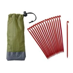 Ønsker man større frihed i opsætningen, sådan at yderteltets bundkant ikke deler pløkker med inder teltet, kan man tilkøbe en ekstra pakke pløkker. Ønskes de magen til de medfølgende, vælger man Asivik Lite Pløkker.