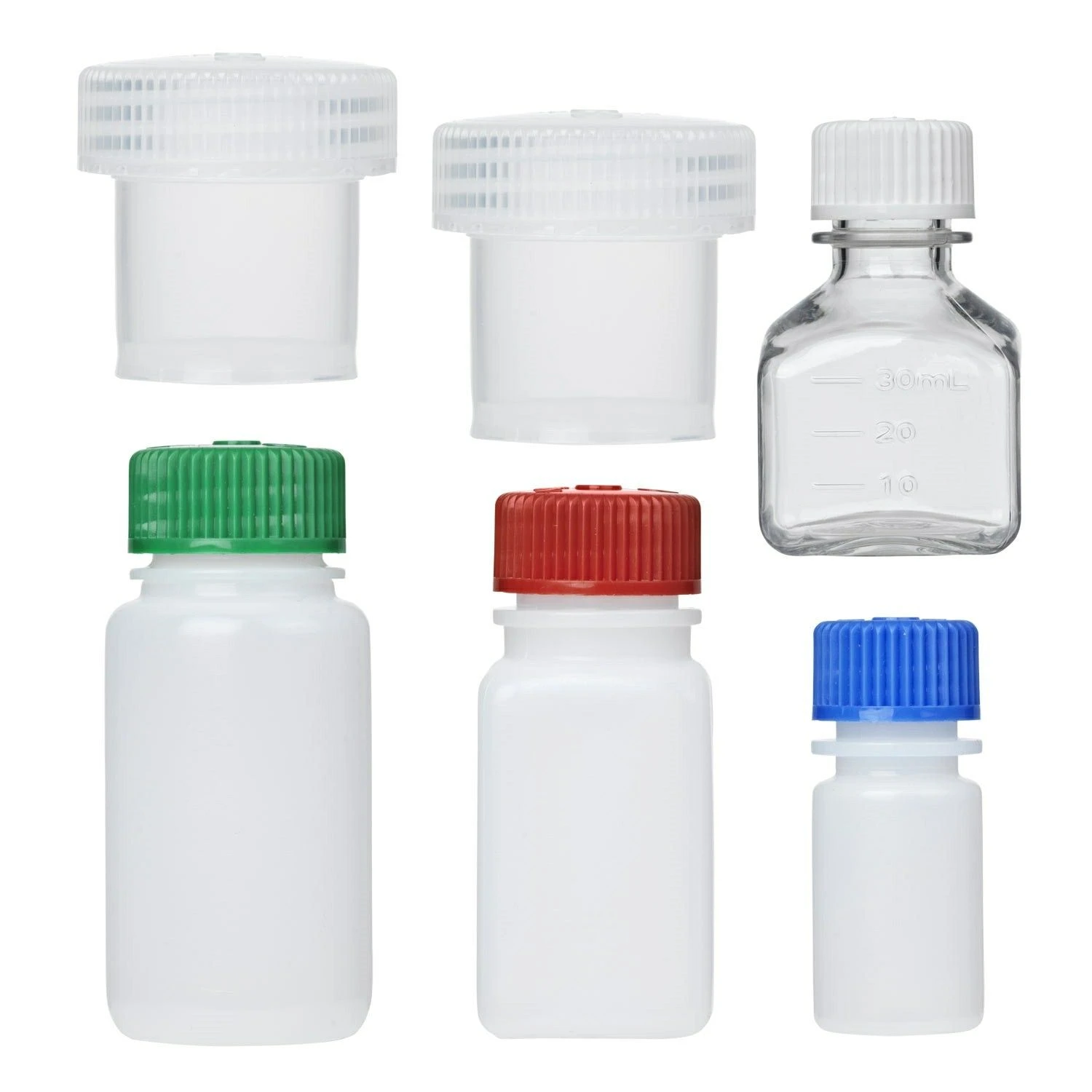 - Sæt med 3 flasker, 2 små bøtter, og en lille klar flaske / pille æske