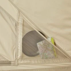 Teltet har fast og 100% vandtæt bund, hvilket er fordel, når det slås op på våd jord, da I ikke skal bekymre jer om væde, der trækker op fra jorden.