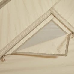 De 4 A-formede døre til teltet giver masser af lys og luft i løbet af døren og er alle forsynet med et lille overhæng, der både giver skygge, hvis døren er åben på en varm dag og forhindrer regn i at slå direkte ind i teltet på en våd…