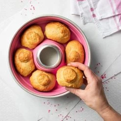 Formen er skræddersyet til Omnia ovn og passer med sin bløde og fleksible facon perfekt ned i ovnen. Takket være silikoneformens slip let-egenskaber bliver det nemt at bage alle former for kage i Omnia Ovnen og slip-let egenskaberne sikrer samtidig, at der er ikke noget, der sidder fast i formen.