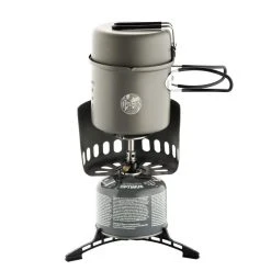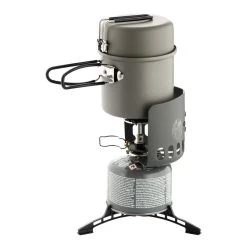 Hele sættet inklusiv en 100 grams gasdåse pakkes hurtigt og effektivt sammen i gryden, når det ikke er i brug, så du får en kompakt enhed, der kun vejer 464 gram og er supernem at have med i rygsækken.