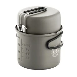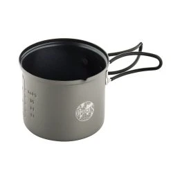 Gryden er forsynet med en lille hældetud, så den ikke drypper og gør det nemmere at hælde kogende vand i i koppen eller posen med frysetørret mad.