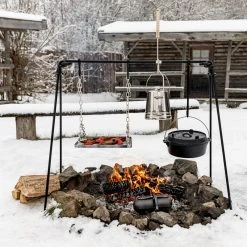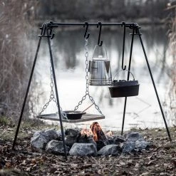 Takket være sin unikke konstruktion er Fire Bridge både klippestabil og klar til brug på ingen tid. Den 115 cm lange tværstang giver dig mulighed for at opstille dit udendørskøkken over et eller flere ildsteder. Dit madlavningstilbehør (bålgryder, kedeler mm.) er ophængt på tre kroge af forskellig længde for at justere afstanden til ilden og dermed regulere tilberedningstemperaturen på dine retter. Grillristen har fleksibel, længdejusterbar kædeophængning. Dens kant omkring risten holder grillmad og pander sikkert på plads.