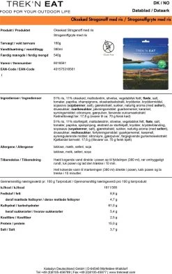 Trek’n Eat Stroganoff tilberedes direkte i posen. Tilsæt blot kogende vand til fyldelinjen (380 ml), rør rundt, luk posen og vent i 5-8 minutter, så er der serveret!